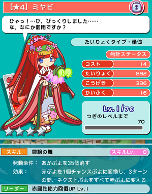 雅楽師のスキルは35個、特定の色のぷよを消すことで