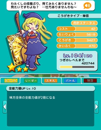 この時点ではリーダースキルは「全能力値UP」になっています。