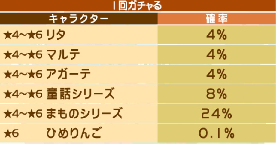 20%で入手できるガチャも
