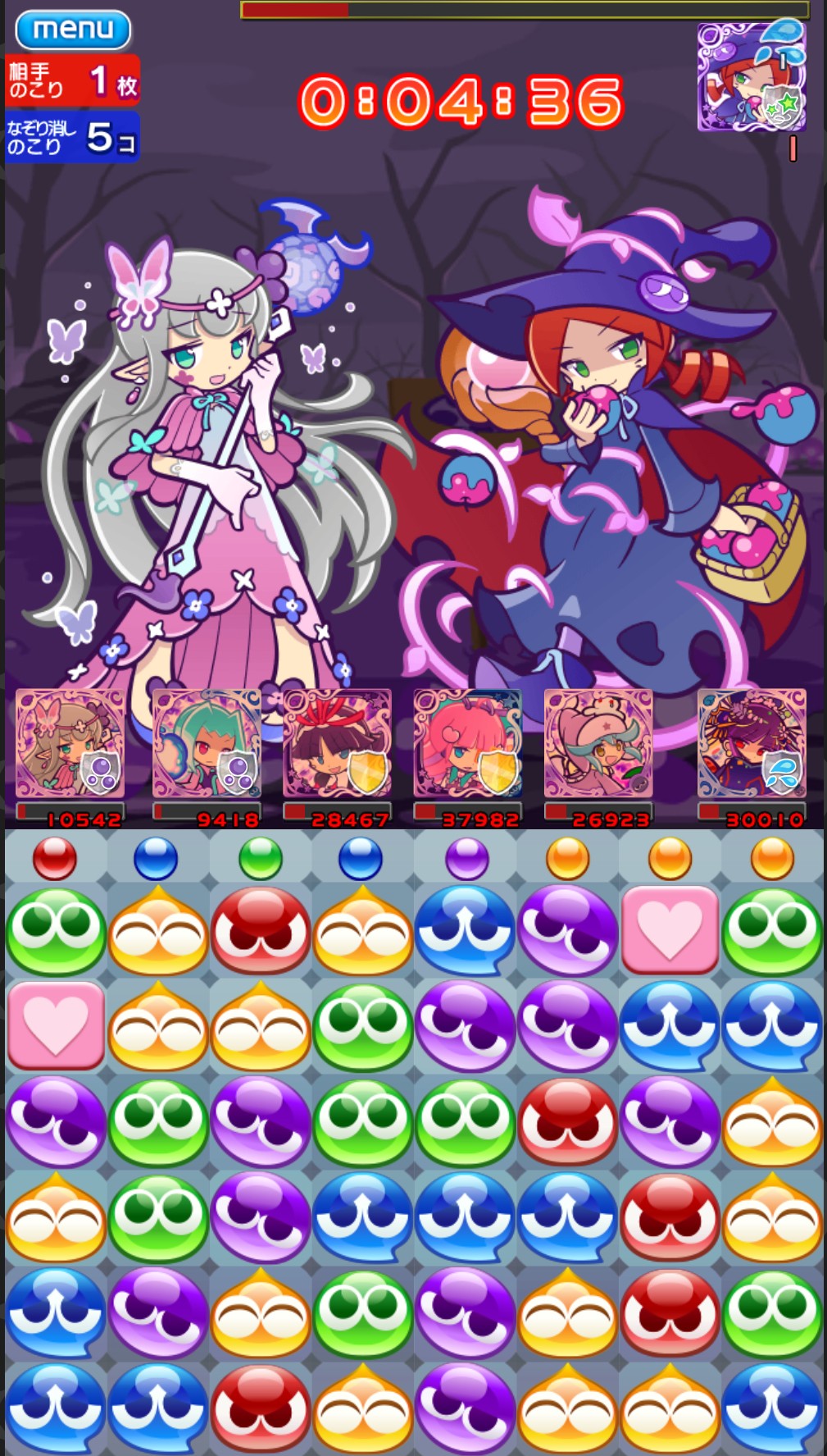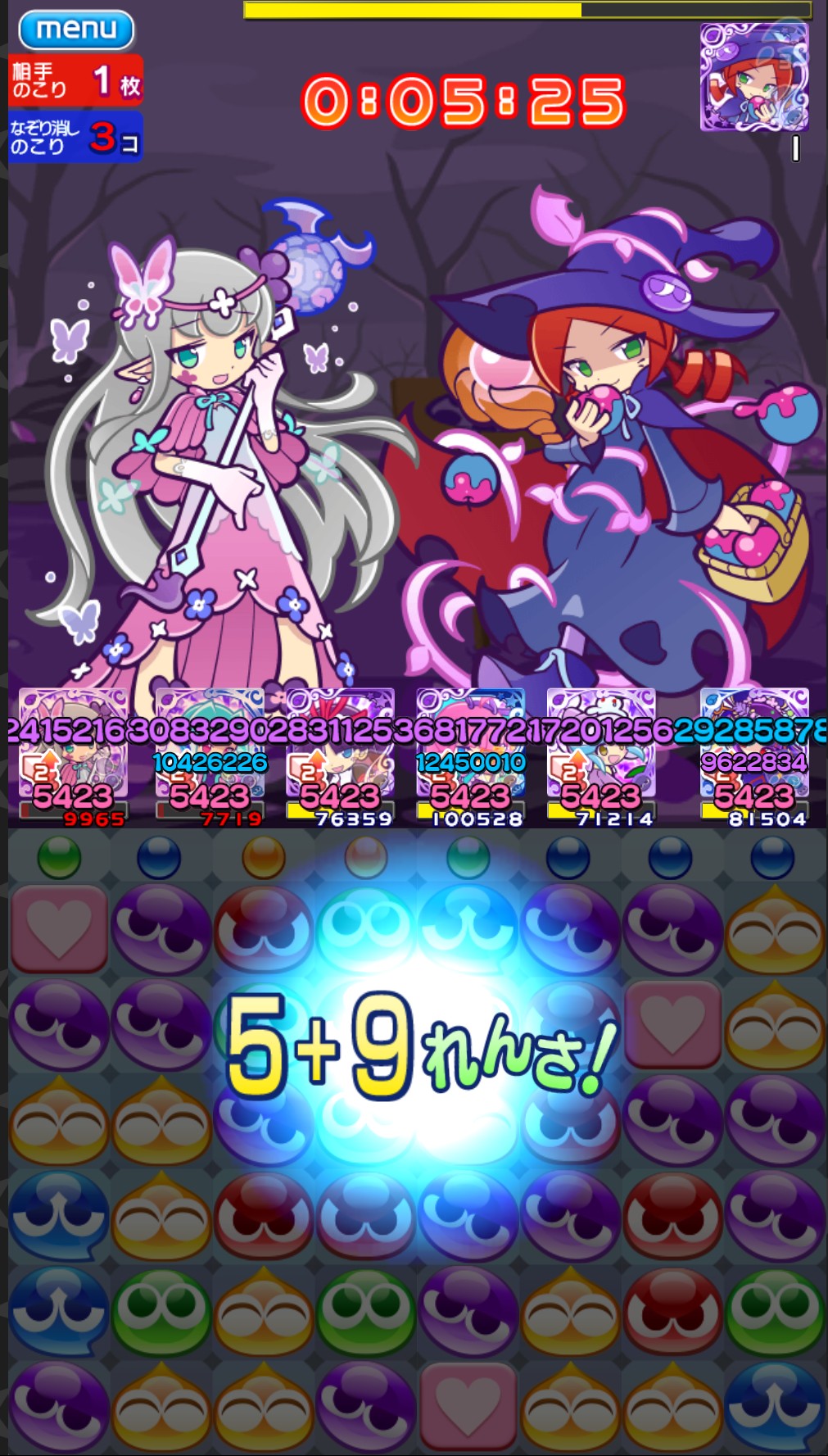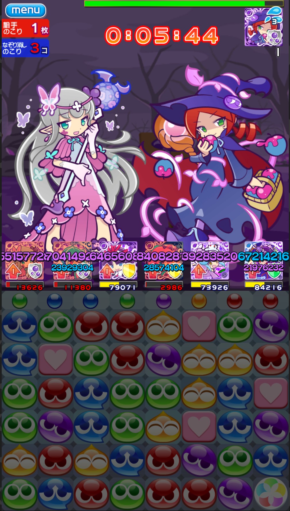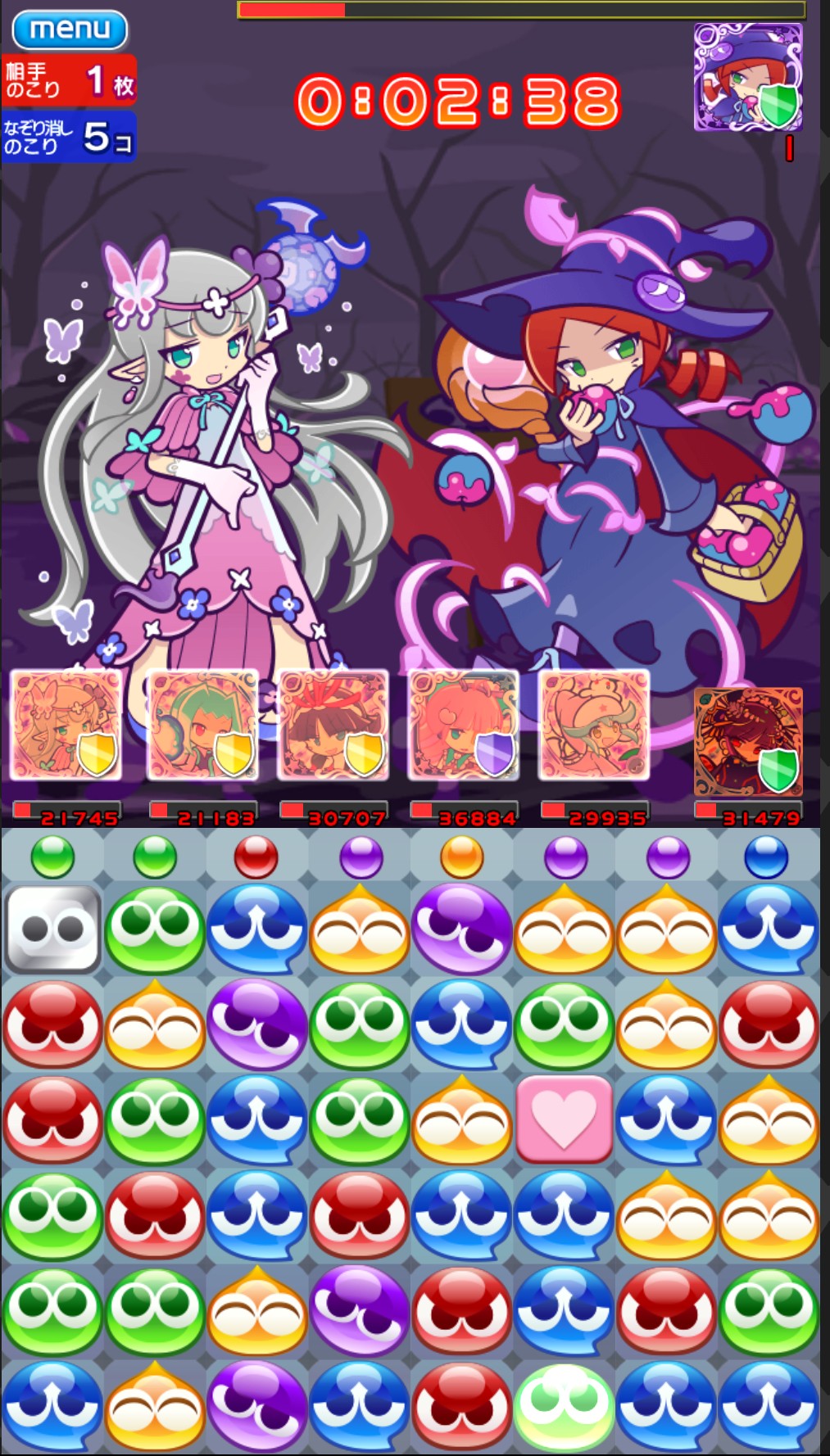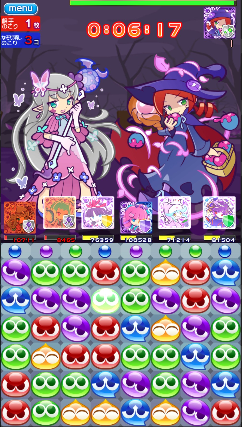紫ぷよをあと1個消すだけで