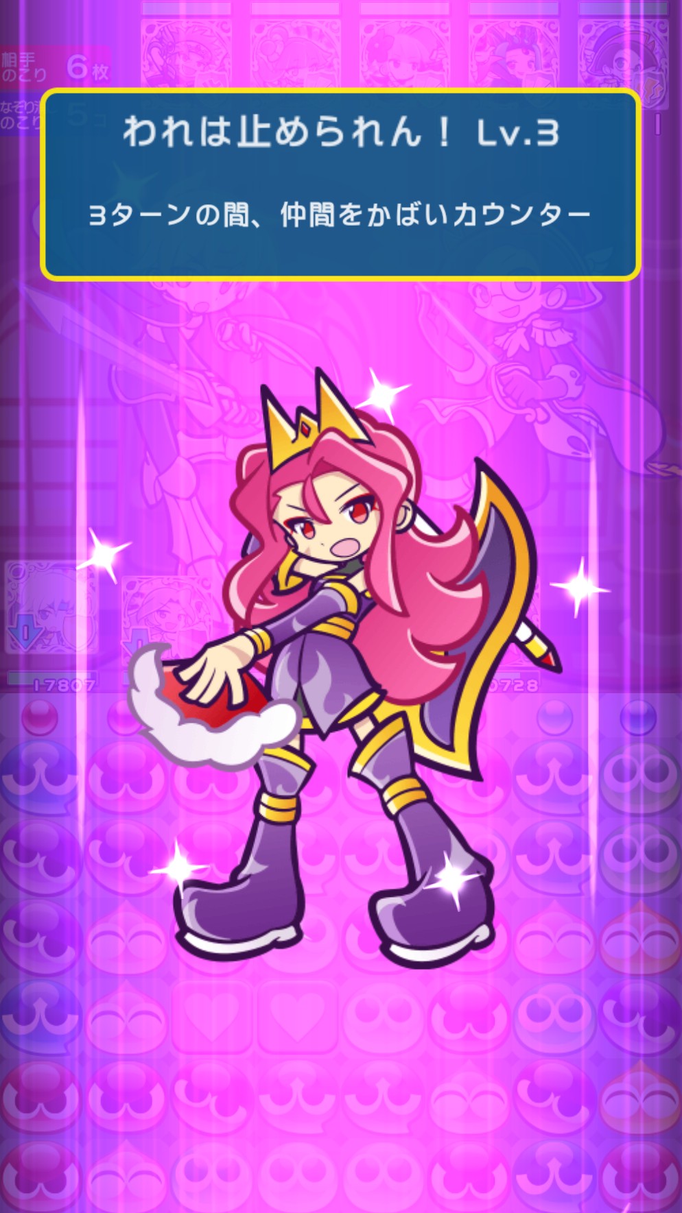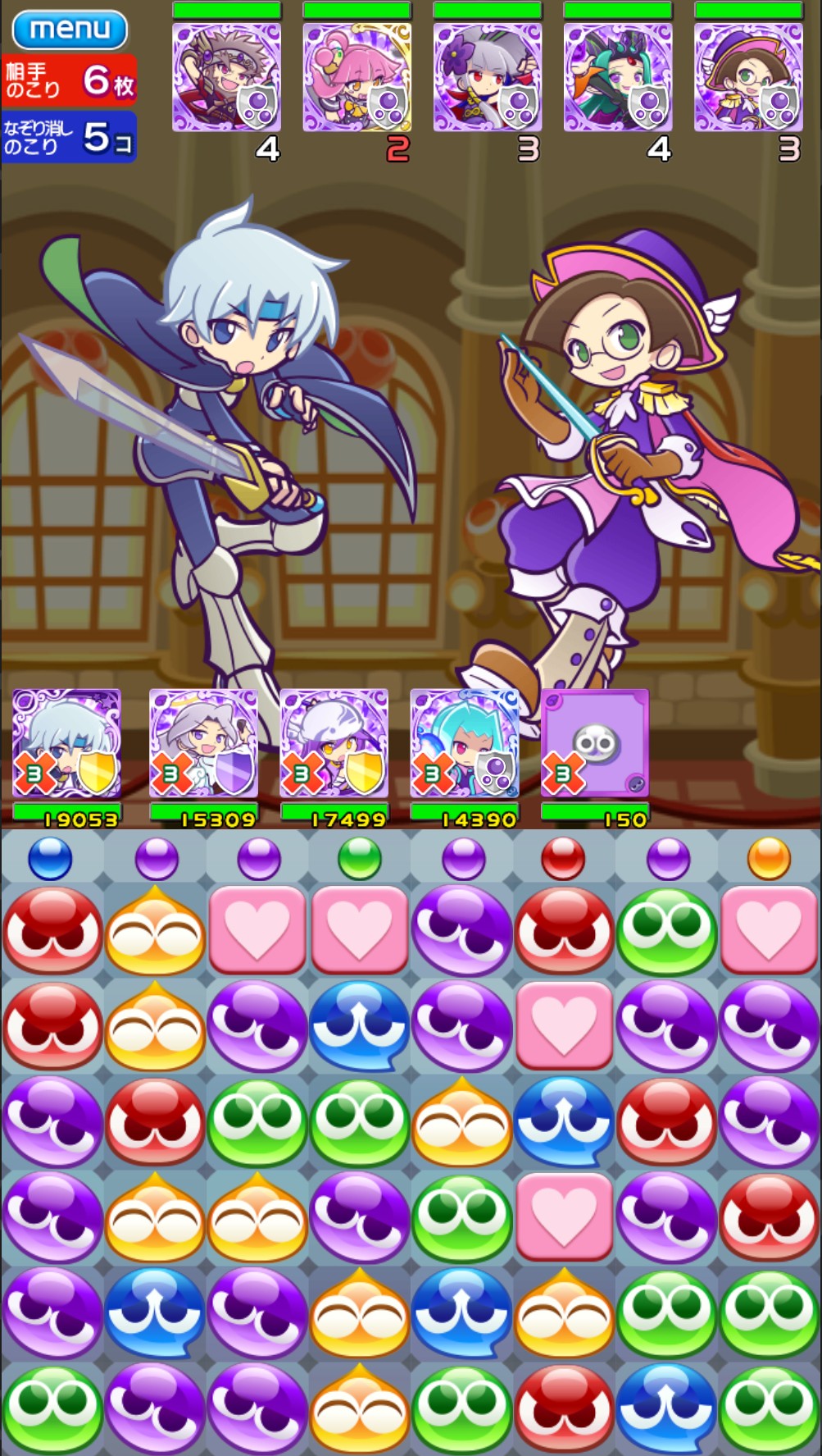 敵の全体攻撃によって小ぷよが倒れ、