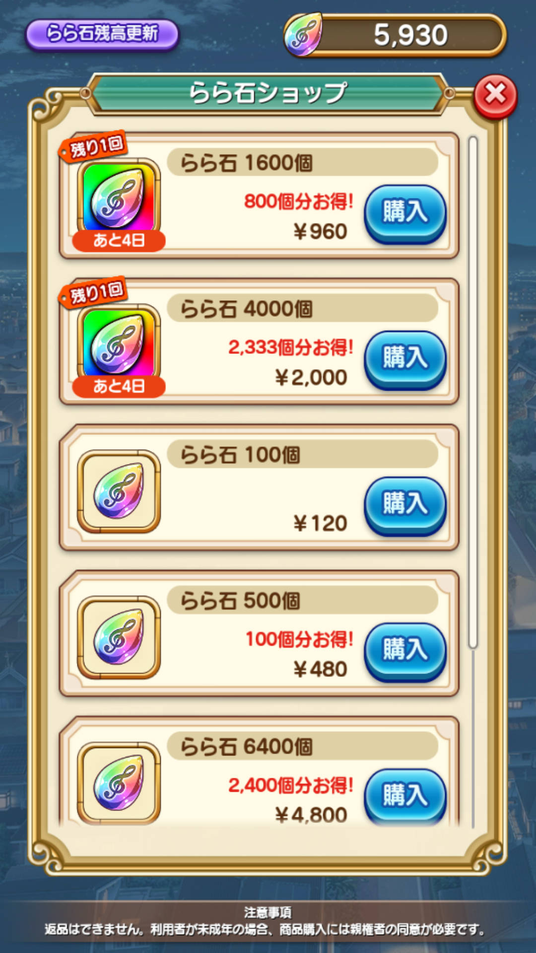 120円で石10個を買えるセールが頻繁にあり、