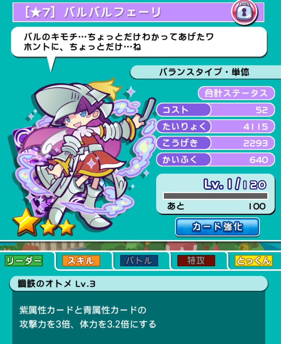 念願のバルバルフェーリを☆7にしました。