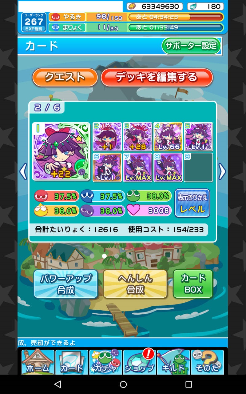 スキルレベルを3にすることが出来ました。紫カードは気合入れて強くしていきたいですね。