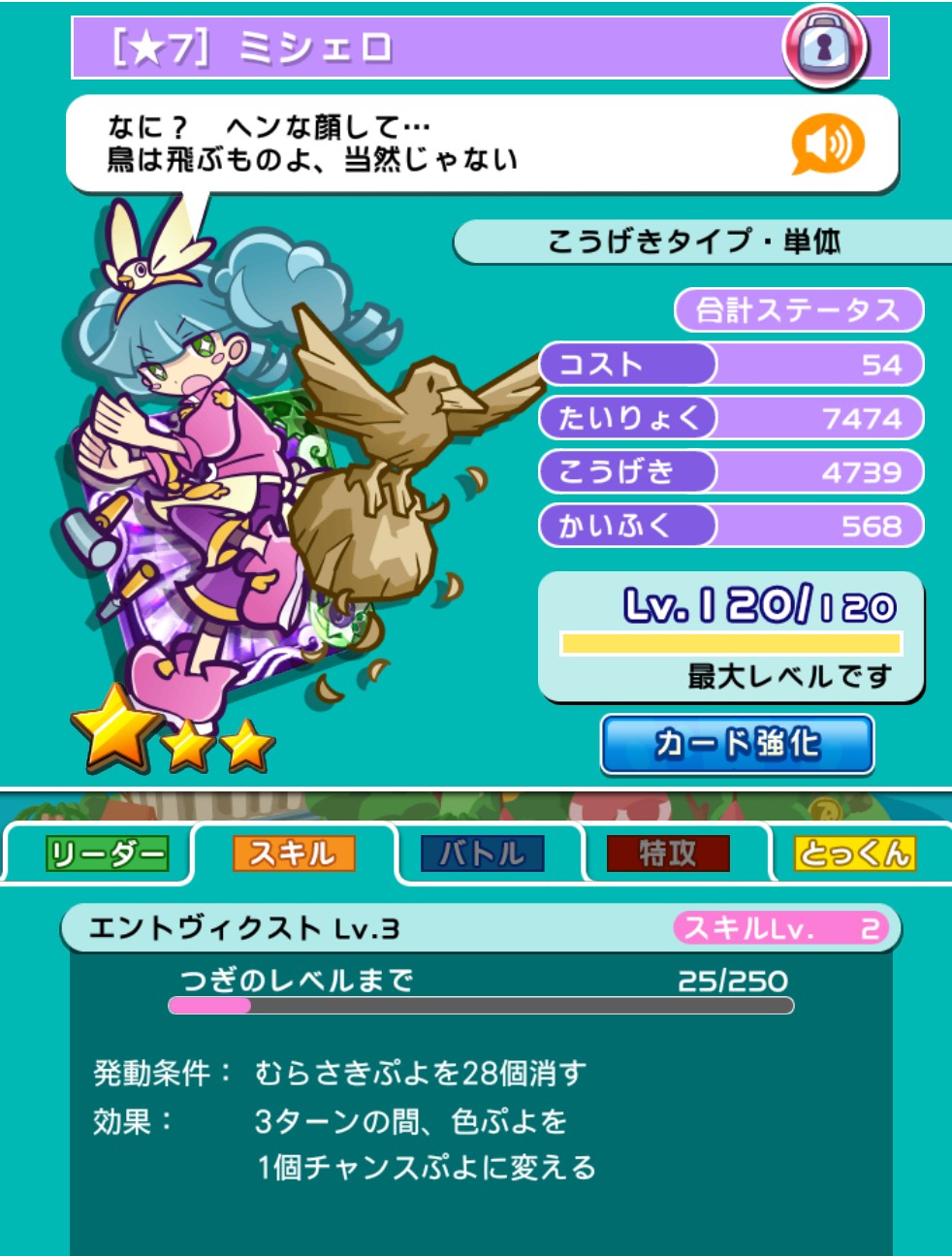 ☆7ミシェロのスキルレベルは2。