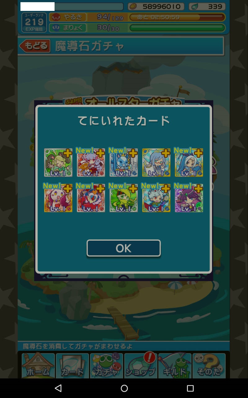 1600万DL記念にもらった石2個をカードBOX拡張に使い、合計、魔導石439個。引くぜっ!!