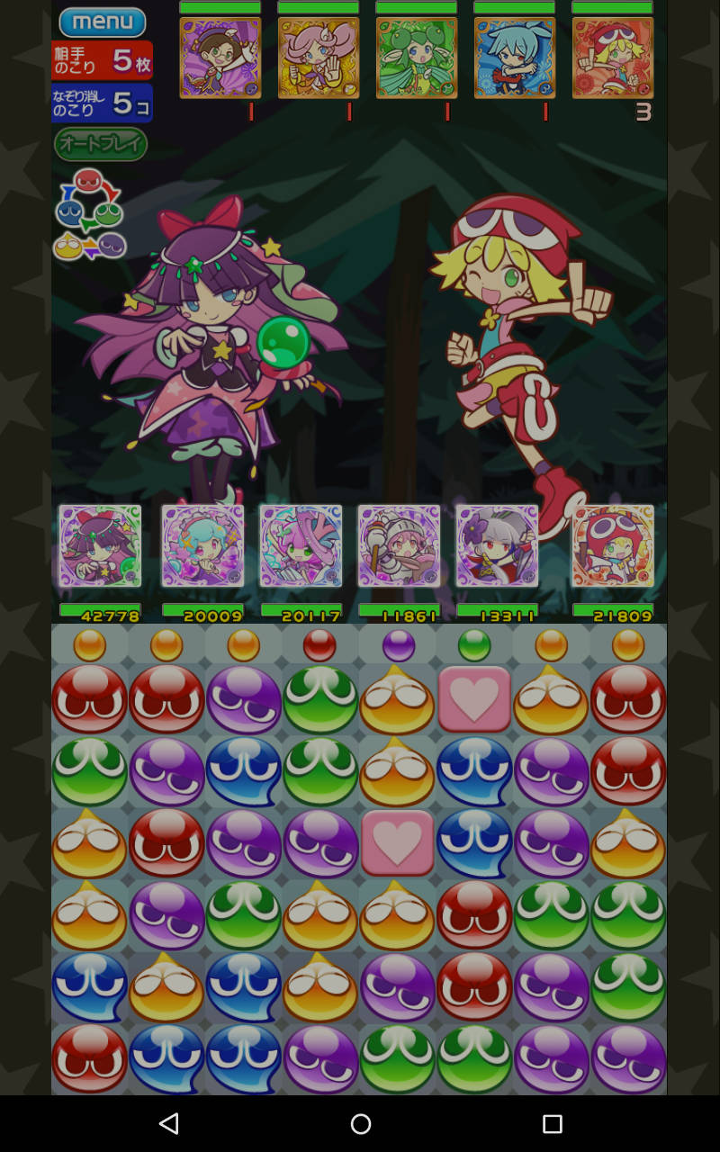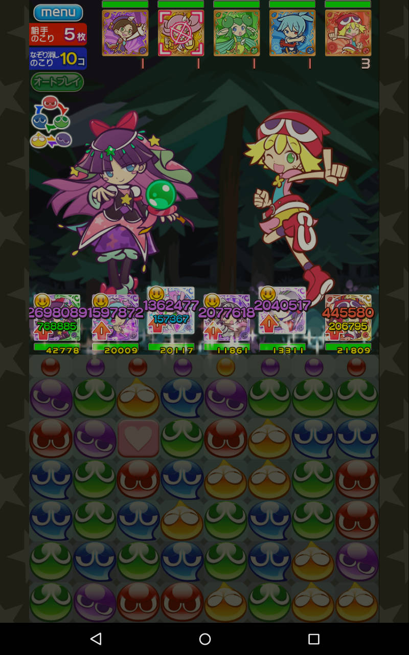 初代ぷよ(ルルーやシェゾなど)体力3761、攻撃2047、回復297、