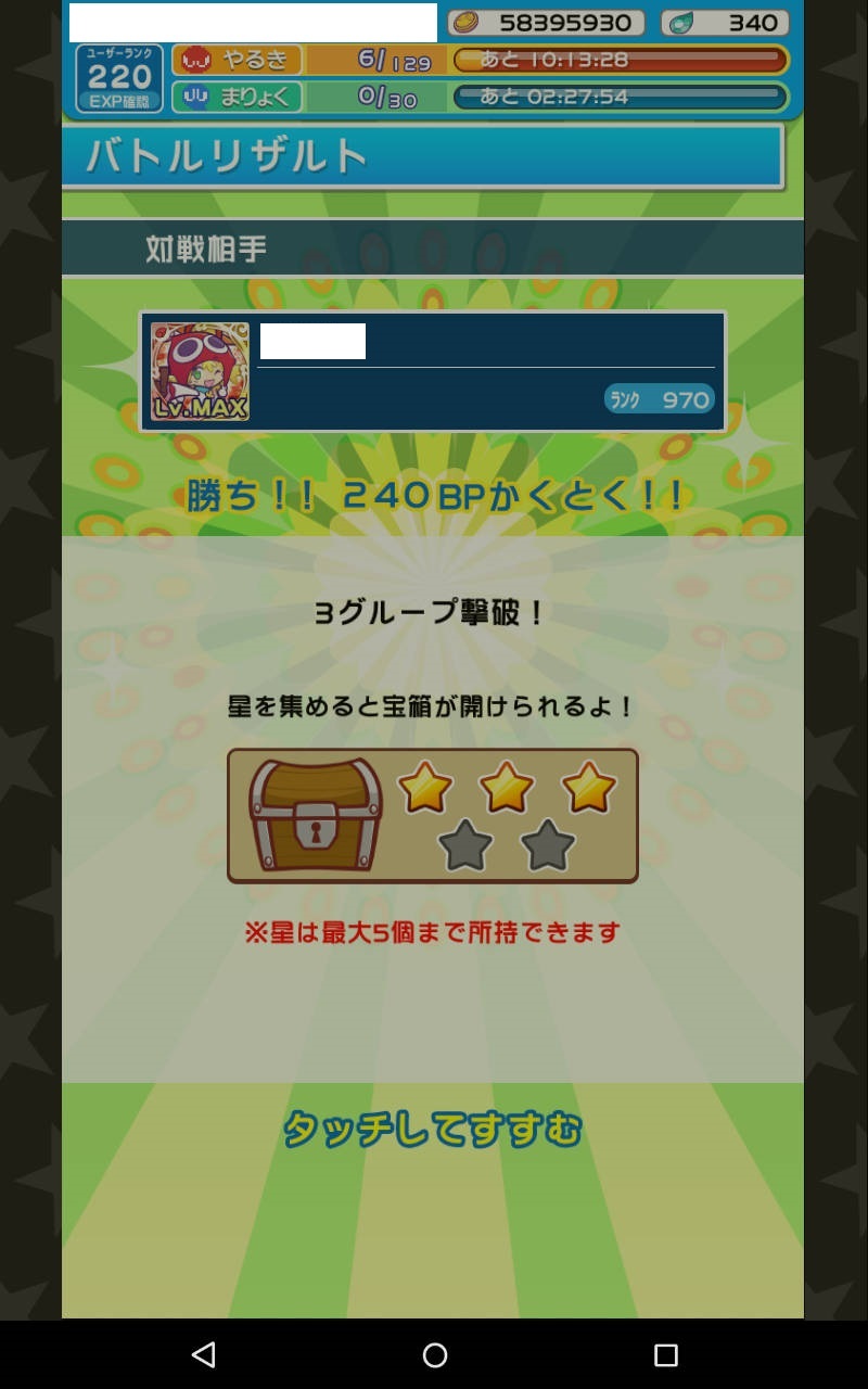 途中、2回大成功した(経験値が1.5倍になる)ので、結果的に消費した王冠ぷよは73個。