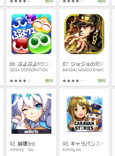 ぷよクエのセルランが86位に